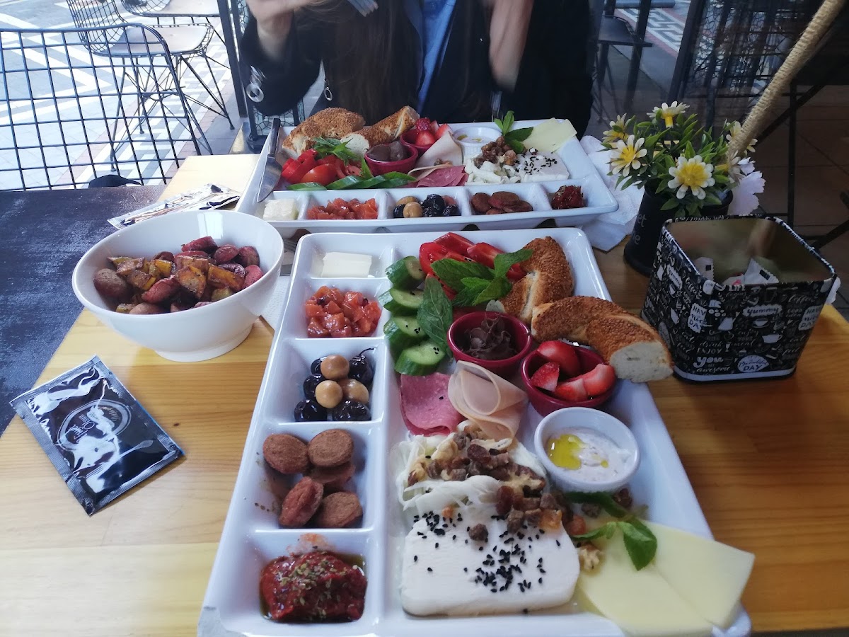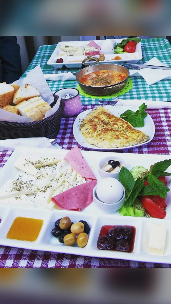 Uçarı's menu is a celebration of Turkish flavors, particularly evident in their breakfast offerings. The Uçarı Kahvaltı is a feast for two, featuring a delightful selection of Çanakkale Ezine cheese, fresh kasar cheese, and creamy cheddar, paired with flavorful Gemlik black olives and fresh Ayvalık green olives. The addition of homemade jams, chocolate hazelnut spread, and the rich flavors of tahini and honey create a palate-pleasing experience that’s hard to resist. Each bite of the treasured menemen—whether classic, cheese-laden, or spiced with sausage—offers a taste of comfort, as the fragrant warmth wafts through the air.